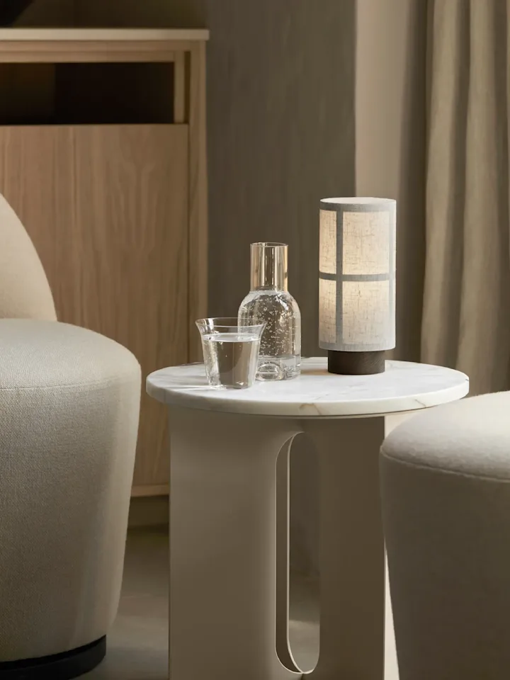 Også materialet er vigtigt - en bordlampe i messing tilføjer en følelse af luksus, mens en bordlampe i træ giver en naturlig følelse. En bordlampe i glas eller en lampeskærm til bordlampen skaber et blødt og varmt lys.