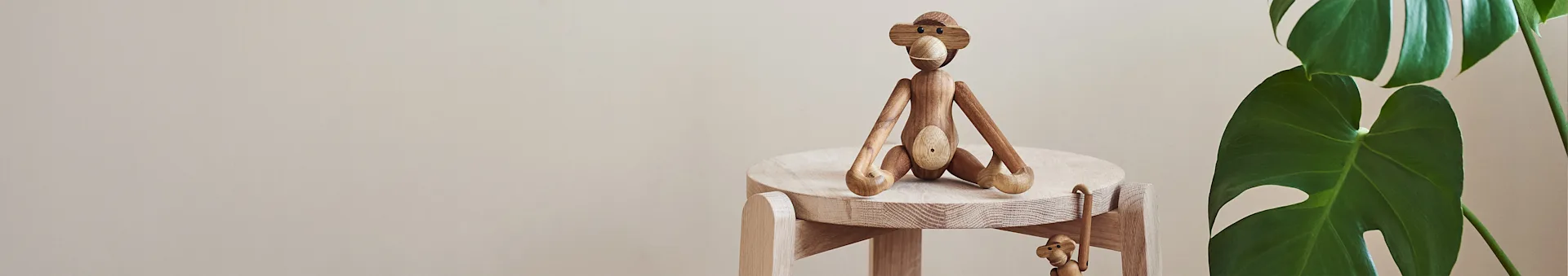 Er du på udkig efter en holdbar gave til små elller store? Den lille abe af træ, som er gpet hen og blevet Kay Bojesens signaturdesign, går rent hjem både ved dåb, studenterfest eller som en fin indflyttergave til vennerne. Den står smukt på en hylde i børneværelset eller på skænken i dagligstuen.