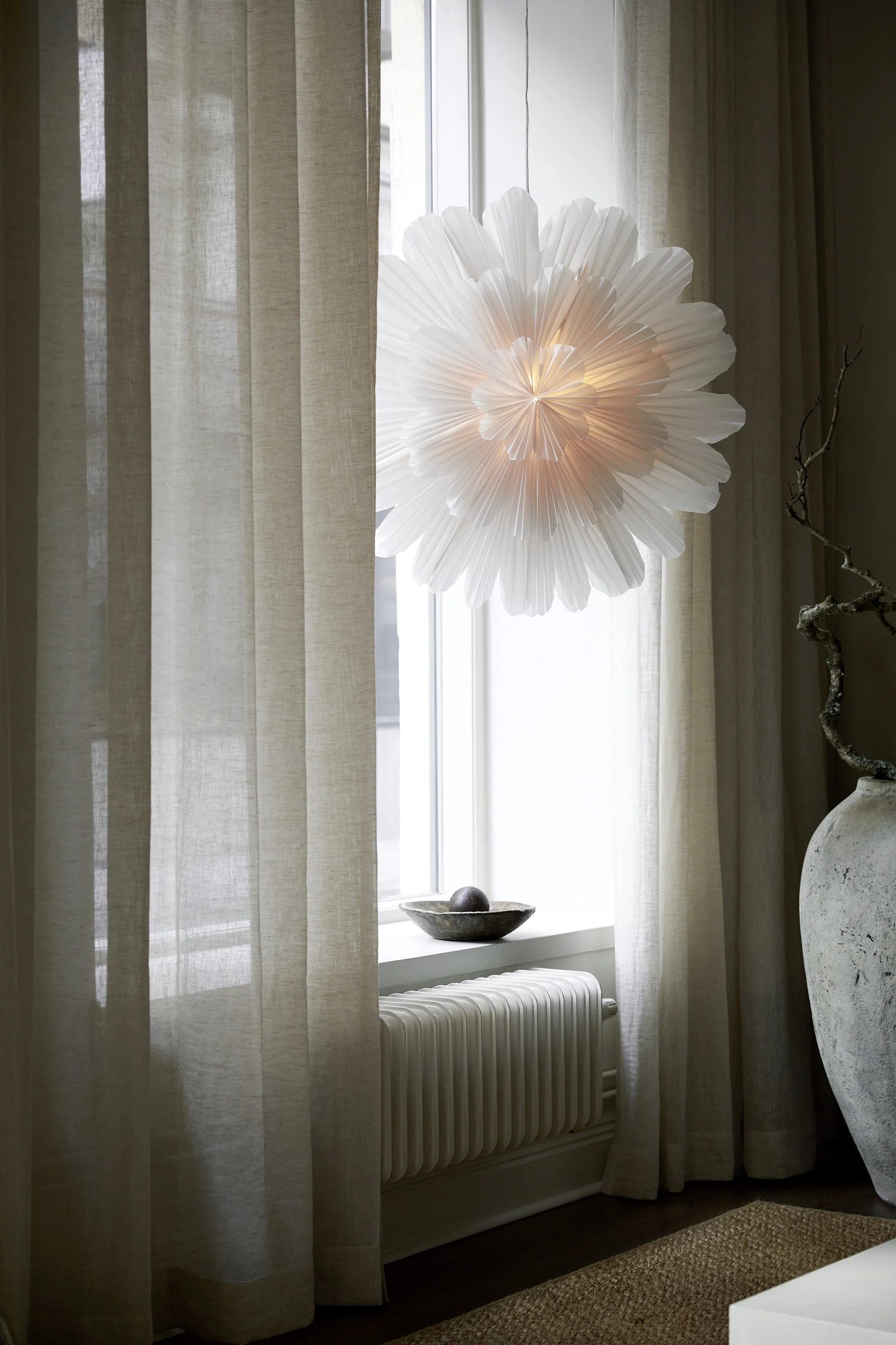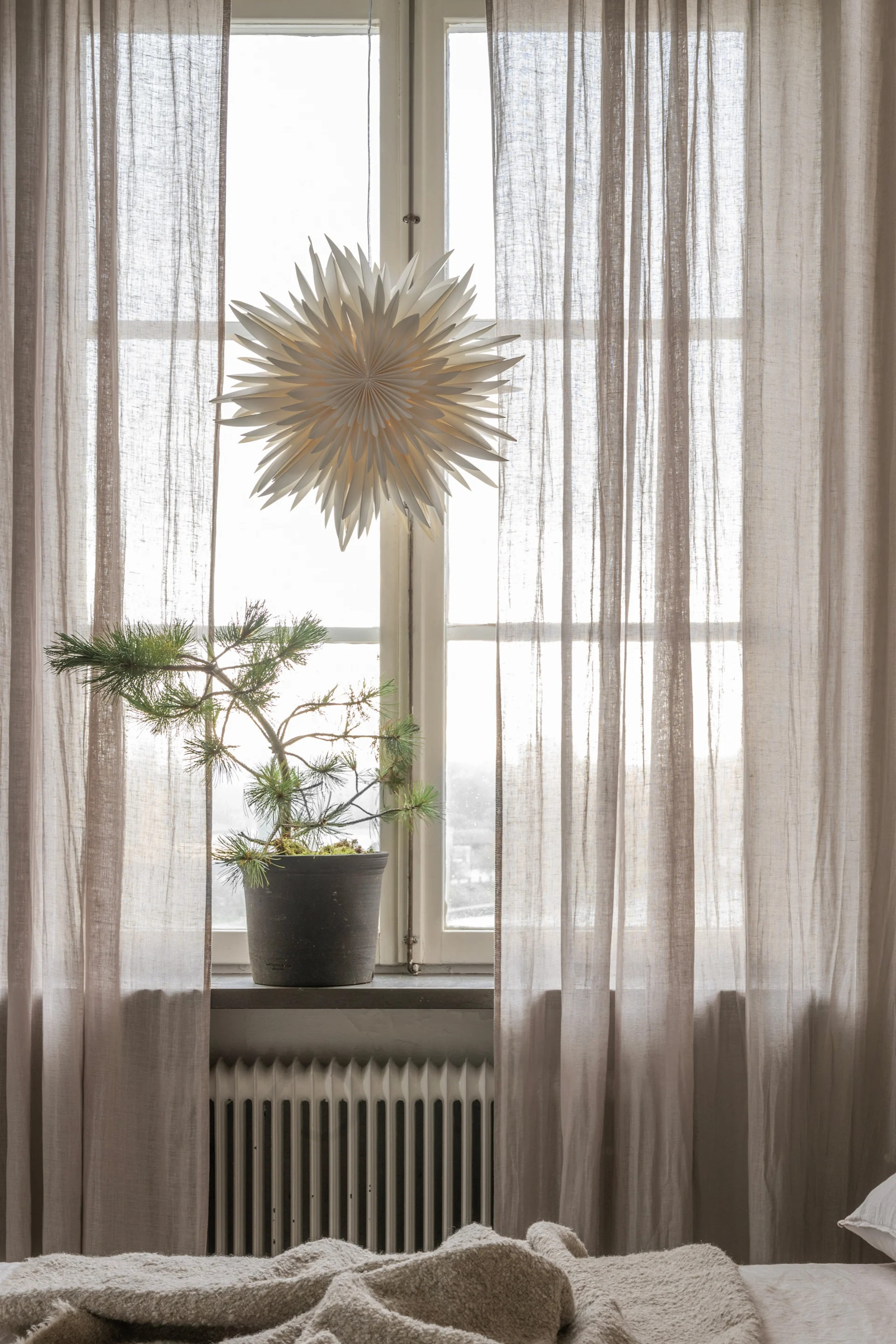 Foldede papirstjerner i fine grå og hvide nuancer indfanger den klare, kølige skønhed fra nord. Deres enkle linjer og rolige toner skaber et stilrent vinterlandskab fuld af magi.