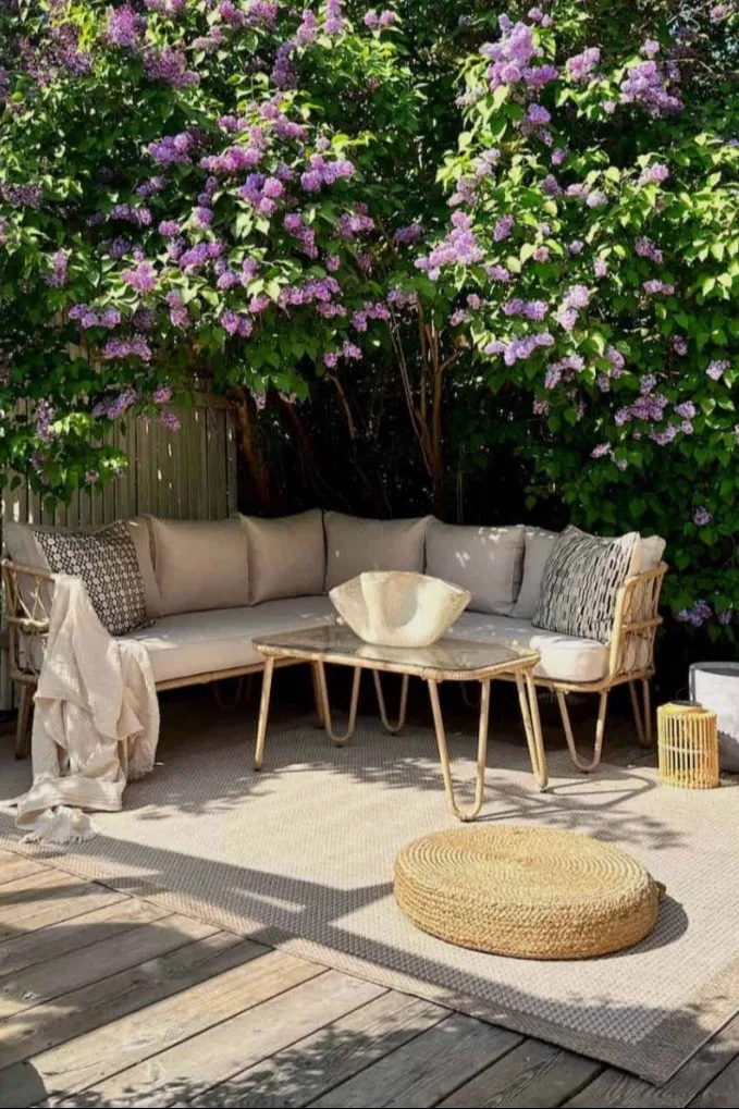Har du omdannet dit drivhus til en ekstra stue? Så brug et udendørs tæppe til at skabe en hyggelig atmosfære der også!