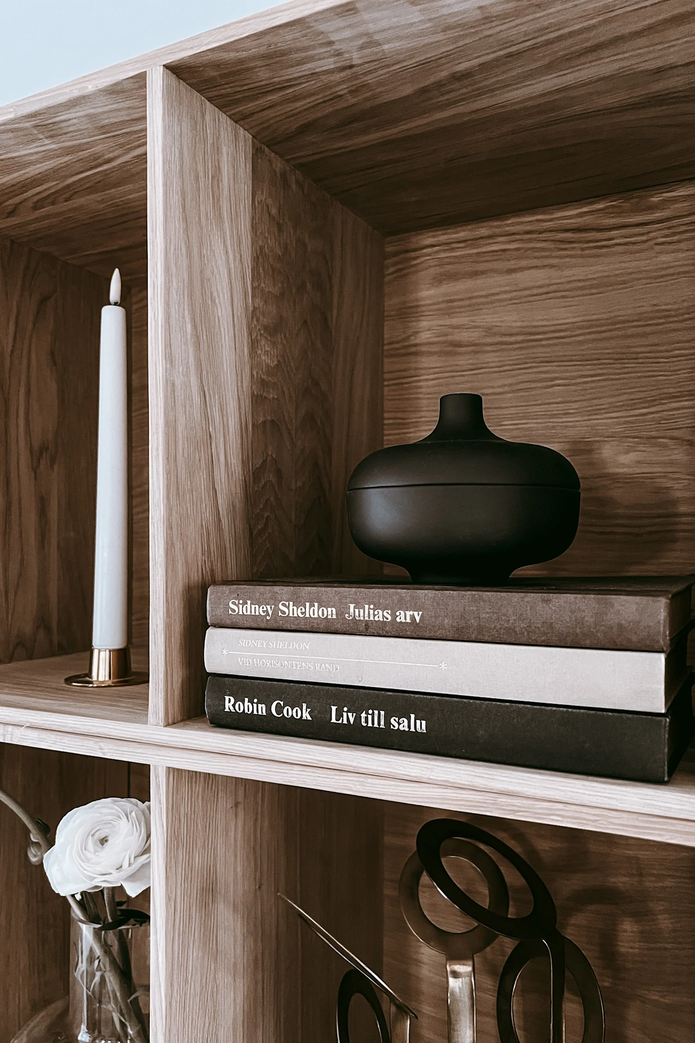 Indret din boghylde med rar belysning og lys for at give lidt ekstra dimension og dybde til hylden. Fuldend gerne looket med LED lys som tillader at du kan indrette din bogreol med elegante lysestager.