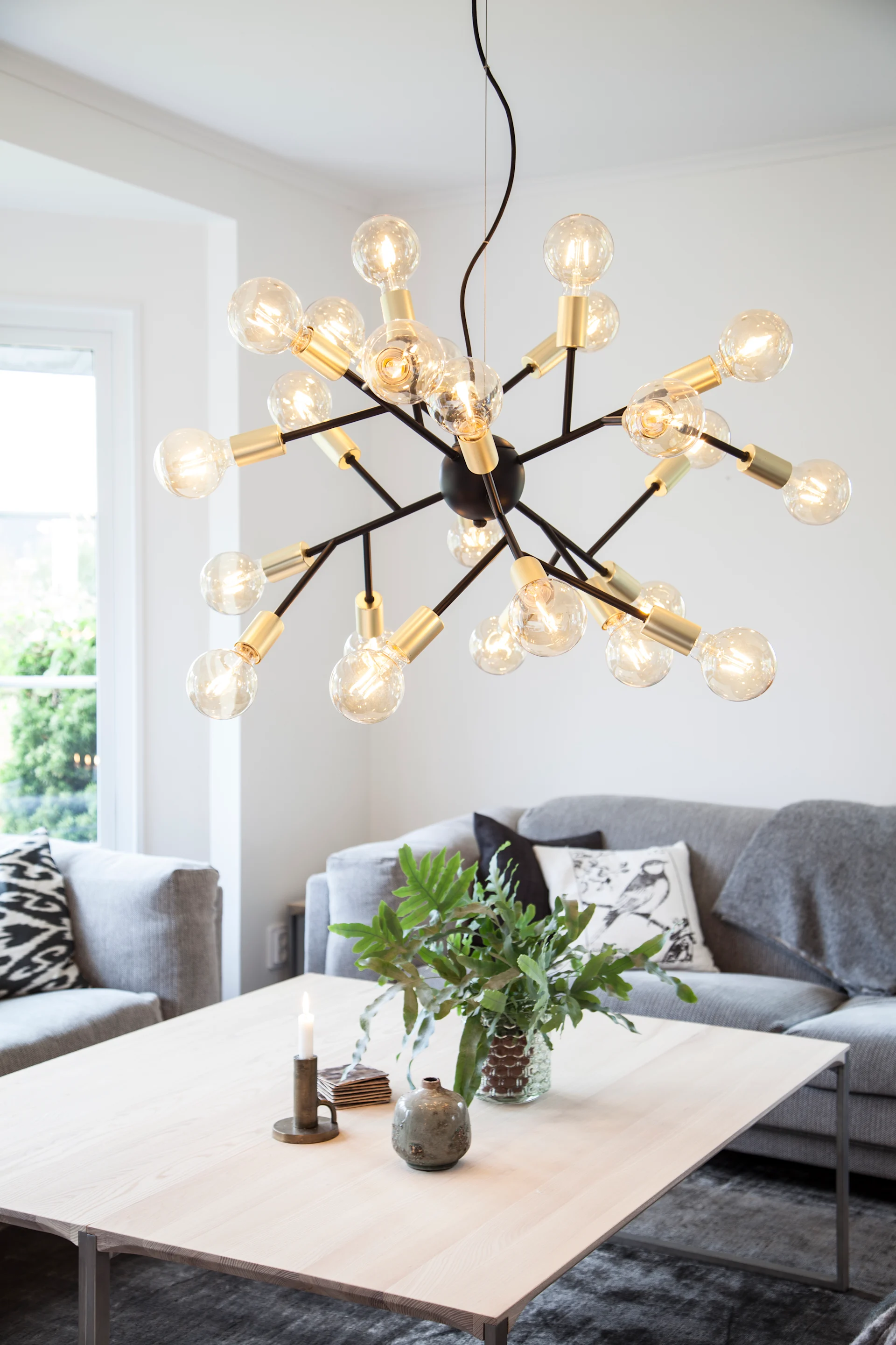 4. Vælg den rigtige pære: Den rigtige temperatur på en pære er afgørende for, hvordan både lampen og rummet faktisk opfattes. Både lumen og kelvin påvirker lysets udseende og følelsen i dit rum, men hvad er det, og hvordan vælger du? Vil du have et varmere lys, som er mere subtilt, eller noget køligere og stærkere? I vores guide til at vælge den rigtige pære finder du masser af tips, der kan hjælpe dig med at oplyse din stue.