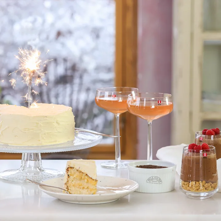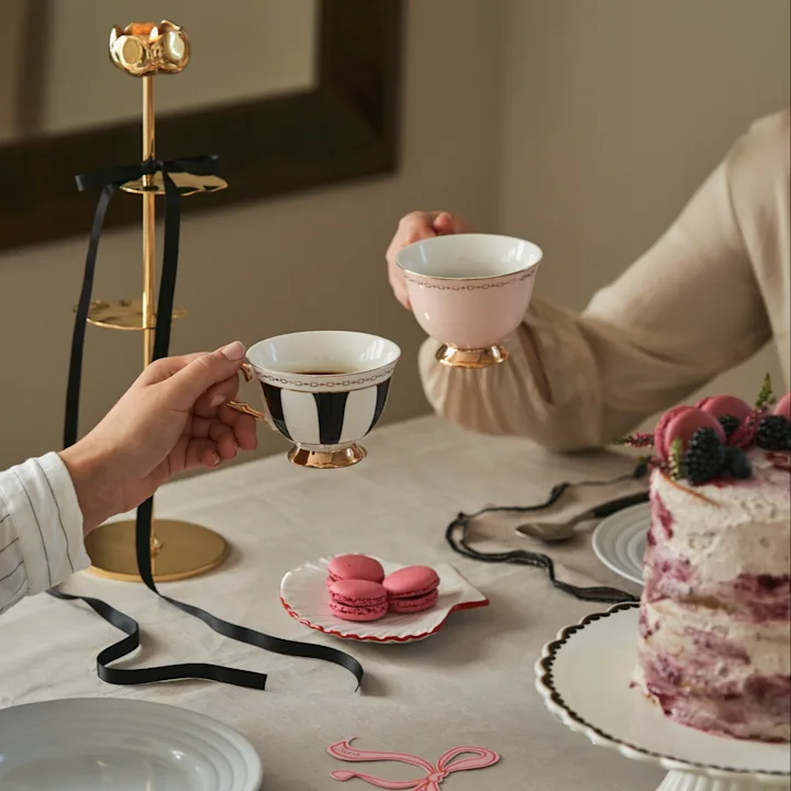 Bordstel med Marimekko-porcelæn, juice og karaffel fra BYON i design af mandariner.