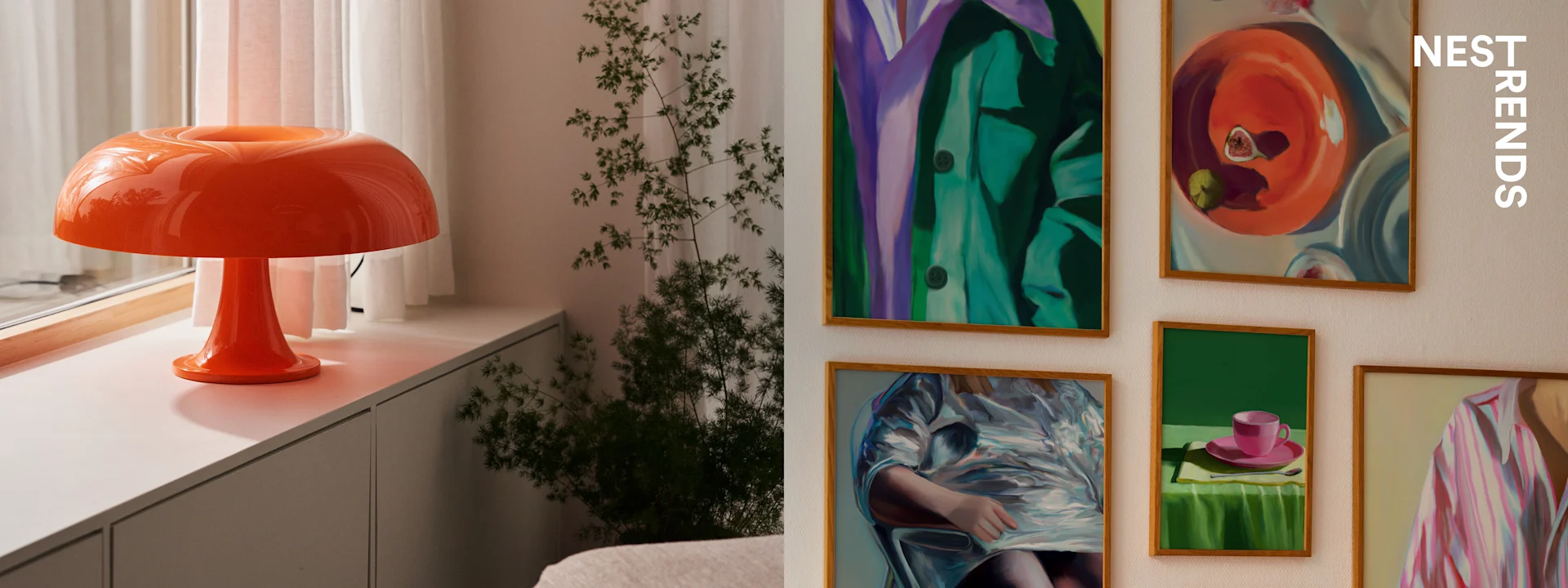 Farvepaletten i den skandinaviske stil er normalt lys og neutral med vægt på hvid, beige og naturligt træ. Men når vi ser tilbage på den skandinaviske design historie, finder vi også stærke farver, ikke mindst fra designikoner som Verner Panton og Marimekko. Så uanset om du tør gå all in med farver i dit hjem eller bare er på udkig efter en detalje der springer i øjnene, kan du finde inspiration til dit farverige hjem her.