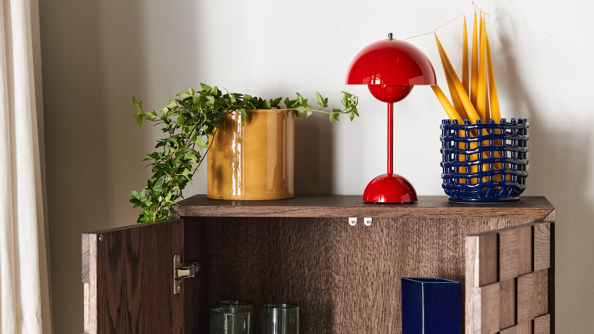 Farvepaletten i den skandinaviske stil er normalt lys og neutral med vægt på hvid, beige og naturligt træ. Men når vi ser tilbage på den skandinaviske design historie, finder vi også stærke farver, ikke mindst fra designikoner som Verner Panton og Marimekko. Så uanset om du tør gå all in med farver i dit hjem eller bare er på udkig efter en detalje der springer i øjnene, kan du finde inspiration til dit farverige hjem her.