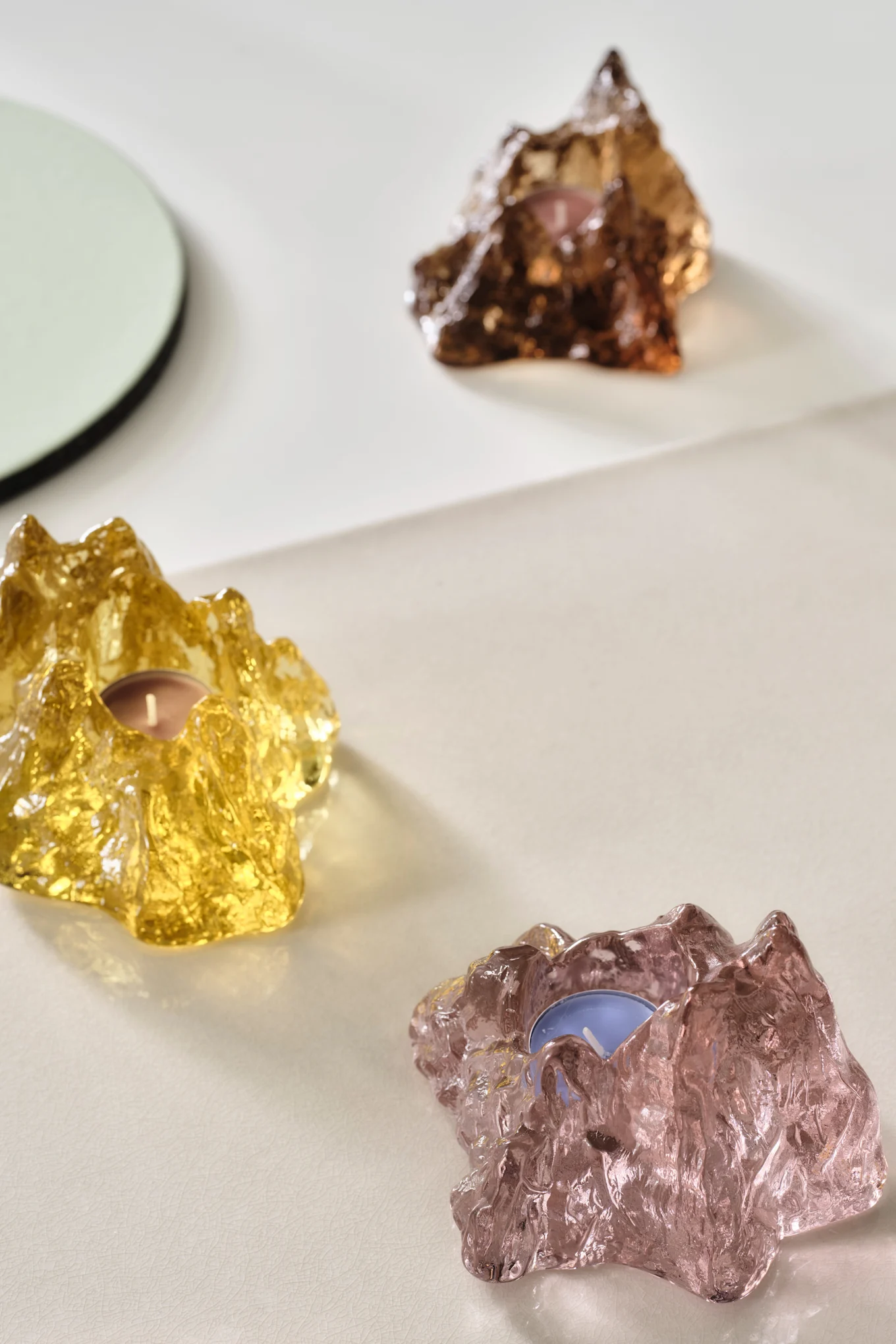 The Rock er navnet på serien som Hanna Hansdotter har designet som en hyldest til og parafrase over Anna Wolffs ikoniske klassiker Snowball fra Kosta Boda. Den velbekendte, uregelmæssige overflade er et kunstværk i sig selv. Fås i flere farver, og det farvede glas skaber sammen med den drastiske silhuet noget helt særligt.