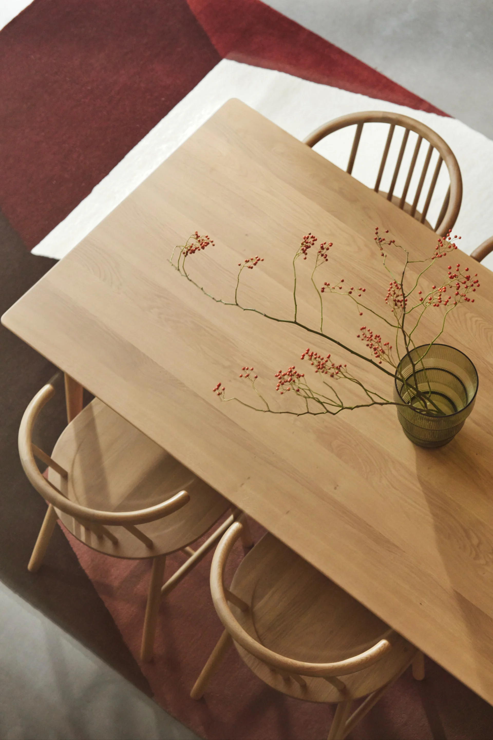VIOR er NJRD's hyldest til »The Scandinavian Moment«, designet til at skabe et naturligt samlingssted for familie og venner. Den fejrer meningsfulde forbindelser og fremmer gode stunder og oprigtige samtaler omkring bordet. Denne gennemtænkte serie er centreret om spisning med spiseborde og stole designet med bløde, indbydende former, høj siddekomfort og naturlige materialer. Som et nik til den skandinaviske tradition indeholder VIOR også en køkkensofa - et møbel, der engang var almindeligt i nordiske hjem, men som man nu sjældent ser. Den afspejler NJRD's engagement i at blande kulturarv med moderne funktionalitet og tilbyde et rum, hvor samværet er i centrum.