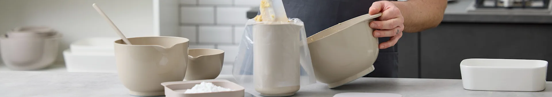Praktiske bageskålesæt gør det nemt for dig at vælge en passende størrelse skål til hver af dine specifikke mixingsopgaver. Vores sortiment omfatter sæt med både små og store mixingskåle, alle i topkvalitet. Hvorfor ikke vælge et sæt af klart farvede mixingskåle fra RIG-TIG? Eller skab dit eget sæt for at matche rustikke køkkeninteriører med stentøjsmixingskåle fra ERNST eller Broste Copenhagen.