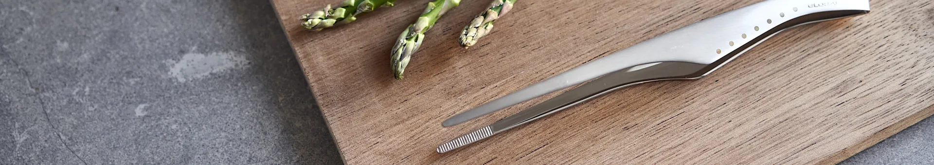 Stegepincetter og grilltænger kommer i en række former, stilarter og materialer. I vores udvalg kan du finde omhyggeligt udvalgte stegetænger af høj kvalitet fra velkendte og populære mærker som Sagaform, Design House Stockholm, Fiskars og Satake.