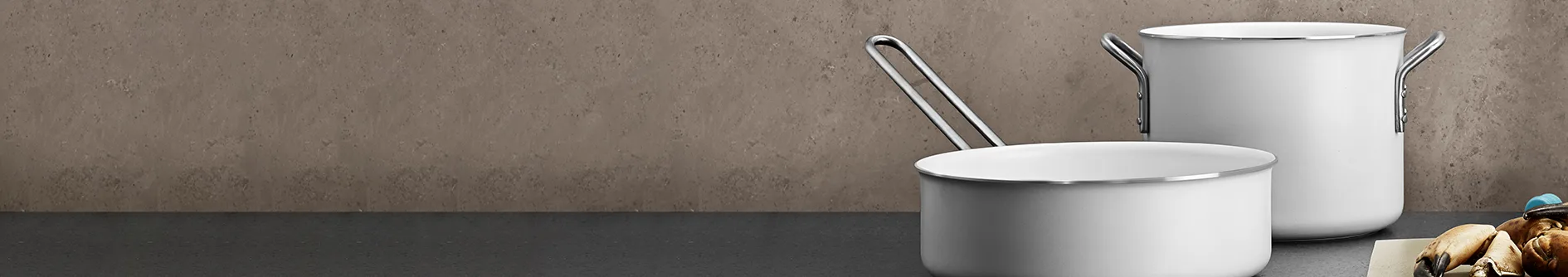 Pots&Pans-kollektionen fra Alessi tilbyder et udvalg af køkkenudstyr og køkkenaccessories, der matcher dit grydesæt, fra dørslag og kogegrej til køkkenredskaber.
