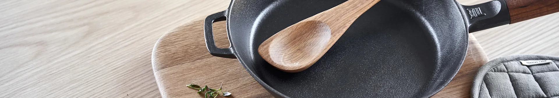 Fiskars har en række af nogle af de bedste støbejernspander i en række forskellige størrelser og stilarter. To af deres populære kollektioner er Norden og Brasserie, som inkluderer små og store støbejernsstegepander med aftagelige håndtag i træ til brug i ovnen.