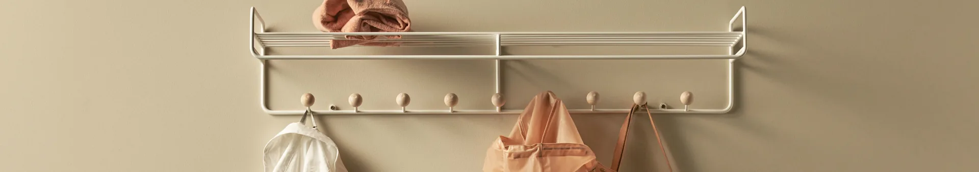 Hatte- og frakkehylder findes i en række former, farver og designs. Mens nogle hattehylder kun består af en enkel hylde, er andre hattehylder udstyret med praktiske kroge eller andre ophængsmuligheder. Her vil du kunne finde nogle af de mest populære skandinaviske hattehylde designs, som f.eks. Nostalgi hattehylden fra Essem Design eller vægmonteret Hat Rack L fra Maze.