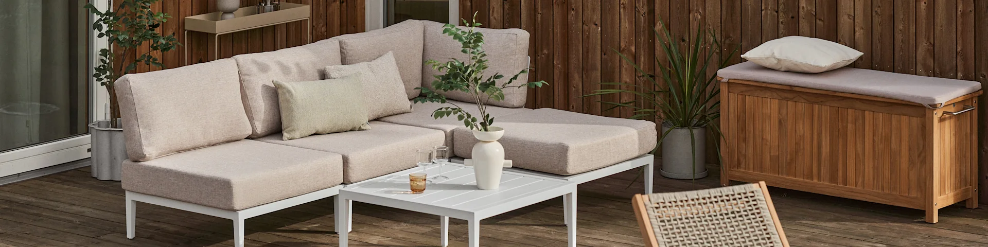 Varmere temperaturer og grøn natur betyder, at det er tid til at dekorere terrassen! Her har vi samlet inspiration til terrassen til dig, der gerne vil opholde dig både indendørs og udenfor og skabe en hyggelig terrasse. Find blandt stilfulde haveborde og -stole, stilfuld transportabel belysning, der oplyser sommeraftenerne og praktiske plasttæpper til en hyggelig terrasse.