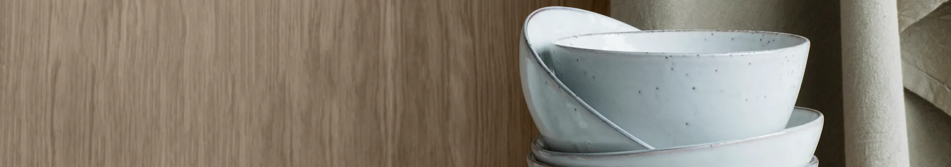 Dæk op og skab en rustik stemning med den håndlavede tallerken Rustic fra House Doctor eller den naturlige serie Nordic Sand af keramik fra Broste Copenhagen, som efter glaseringen færdiggøres under jorden for at få sin unikke og ru finish.