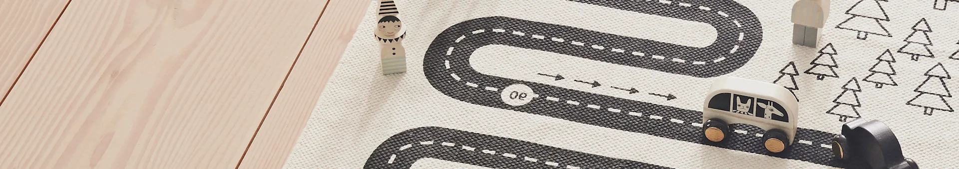 Bliv inspireret af vores dejlige tæpper til børneværelset i legefulde designs fra populære mærker som Kateha og Micki.
