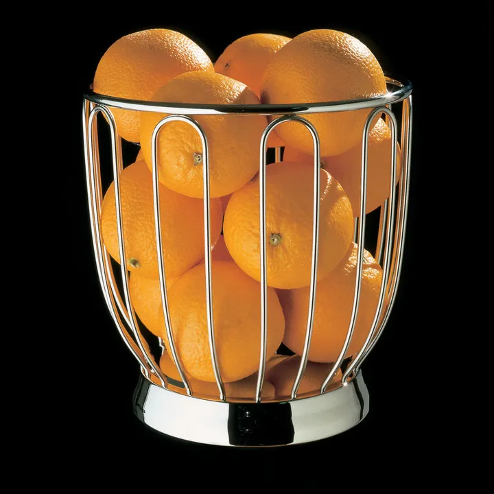 Alessi trådkurv fra Alessi er en ikonisk kurv designet af Ufficio Tecnico Alessi. Med sit luftige trådnet og sin markante silhouette er den både funktionel og dekorativ på bordet. Perfekt til citrusfrugter eller som en organiserende detalje i køkkenet eller stuen — den fremhæver indholdet samtidig med, at den giver rummet karakter. Nem at flytte efter behov og let at rengøre, en tidløs følgesvend, der gør hverdagen lidt smukkere.