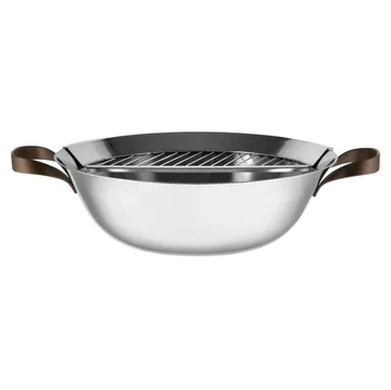 Edo wokpande i rustfrit stål og aluminium fra Alessi har to praktiske håndtag i et moderne design samt et medfølgende låg. Den magnetiske bund på wokpanden gør den egnet til brug på induktionskogeplader. Edo-serien er designet af Patricia Urquiola og indeholder udover denne wokpande også almindelige stegepander og gryder i samme stilfulde design.