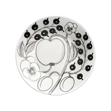 Paratiisi underkop Ø16,5 cm til tekop 28 cl Paratiisi-fadet fra Arabia er et matchende tilbehør til tekoppen i samme serie. Tefadets enkle form og smukke mønster gør, at det passer til både den enkle hverdagshygge og til kaffestunden efter middags-selskabet. Serien Paratiisi blev designet allerede i 1969 af designeren Birger Kaipiainen og er blevet en af Arabias klassikere. Det mønstrede fad kan bruges både til tekoppen som et matchende sæt og som et serveringsfad til småretter.