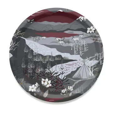 Fjällvandring bakke Ø31 cm fra Arvidssons Textil er lavet af FSC-mærket birkefiner med et mønster designet af Louise Videlyck, inspireret af de norrländska fjällen. Den runde bakke fungerer både som serveringsunderlag og som dekorativ detalje i køkkenet.