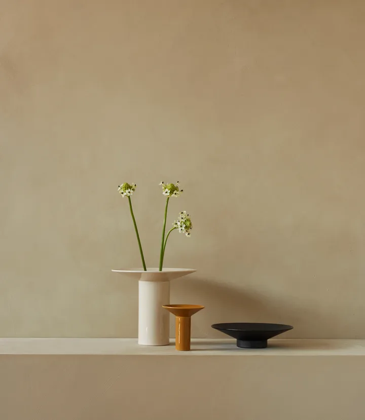 Hana vase Ø27x7 cm fra danske Audo Copenhagen er en vase lavet i stentøj. Designet af Krøyer-Sætter-Lassen med inspiration fra den japanske tradition ikebana, som er en kunstnerisk måde at arrangere blomster på med få smukt placerede stilke. Toppen kan fjernes for et mere traditionelt blomsterarrangement.