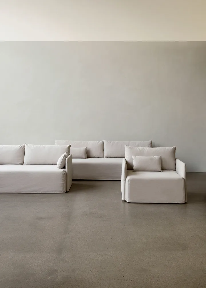 Offset løs polstring til 3-personers sofa fra Audo Copenhagen giver dit siddeområde nyt liv. Designet af Norm Architects er den fremstillet i en særlig blanding af bomuld og hør. Polstringen fås i flere tidløse farver og er både aftagelig og vaskbar, hvilket muliggør nem vedligeholdelse. Den bløde struktur og naturlige finish giver sofaen en afslappet silhuet og fremhæver atmosfæren med en elegant følelse.