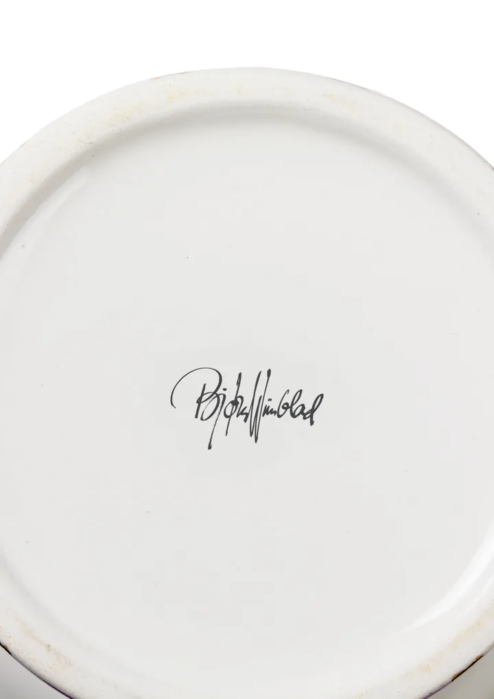 Olga vase 15 cm fra Bjørn Wiinblad er fremstillet af glaseret keramik og prydet med farverige dekaler, der fanger Wiinblads ikoniske stil. Den 15 cm høje vase kombinerer kunst og funktion, perfekt til at give hverdagen farve og fremhæve din kreativitet.