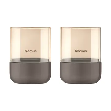 Calma fyrfadsstage Ø7 cm 2-pak fra tyske blomus er et sæt med to små stormlygter med en cylindrisk glasskål på en base i beton. Spejleffekten på indersiden af glasset forstørrer flammens billede på en effektfuld måde. Placer Calma på bordet eller i vindueskarmen for en hyggelig stemning.