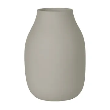 Colora vase S 15 cm fra tyske blomus er fremstillet i porcelæn med rundet form. Vasen passer både til den store buket og enkelte kviste eller blade. Designet er enkelt og tidløst, og passer til de fleste hjem.