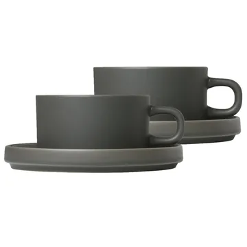 Pilar temugge med underkop er fremstillet i holdbart og robust stentøj. Inviter en ven hjem og nyd te i disse to krus med tilhørende underkopper. Kollektionen Pilar indbyder til det perfekte måltid med sine trendy farver og solide tidløse materialer. Bag Pilar står designeren Nina Thöming fra Flöz Design. Kombinér gerne med flere keramikprodukter fra samme serie.