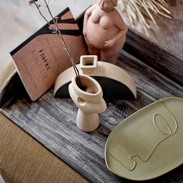 Ngan bakke 18,5x30 cm fra Bloomingville er et håndlavet fad i stentøj med konturerne af et ansigt. Den iøjnefaldende bakke har en oval form, hvor den ene kant er let spids, og den har desuden en effektfuld glasur, som giver smukke farvevariationer. Brug bakken til alt fra morgenmad til eftermiddagskaffe, eller lad den være en fin indretningsdetalje på for eksempel sofabordet eller sidebordet.