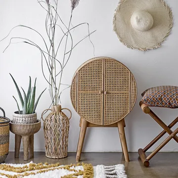 Otto skab er et rundt skab på ben fra det danske mærke Bloomingville. Skabet er fremstillet af rattan med en ramme i træ. Indeni skabet er der en hylde til opbevaring. Otto er et lille og letplaceret opbevaringsskab, som passer lige godt på soveværelset som i stuen.