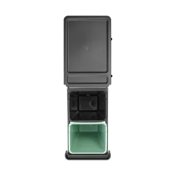 Sort&Go Indbyggede affaldsspande, 2x30 L fra Brabantia er fremstillet af genanvendt stål og polypropylen. Disse rektangulære spande er designet til at passe i skabet, hvilket gør affaldssorteringen effektiv uden at optage gulvplads. De er lette at montere, rengøre og tømme, og har ekstra opbevaringsplads og kroge for optimal orden.