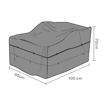 Brafab møbelovertræk lænestol fra Brafab tilbyder en åndbar og vandtæt beskyttelse til dine havemøbler. Fremstillet af vandtæt ripstop polyester (210D) med TPU-belægning, som beskytter mod kondens og skimmel. Møbelovertrækket er let og smidigt, nemt at bruge og opbevare i den medfølgende opbevaringspose. Sikrer, at dine møbler holdes tørre og rene gennem hele sæsonen.
