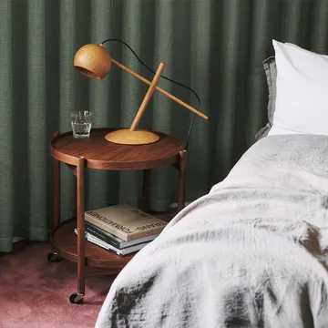 Bølling Tray Table model 50 rullebord fra Brdr. Krüger er et elegant serveringsbord i massivt træ, som forener tidløs design med funktionel anvendelse. Skabt af Hans Bølling i 1963 er det blevet en ikon inden for dansk designhistorie. Med sine bevægelige hjul og vendbare bakker tilbyder bordet en fleksibel løsning til servering, opbevaring eller som en stilfuld detalje i dagligstuen. Den gennemtænkte konstruktion gør det nemt at flytte og tilpasse efter behov, uanset om det bruges til hverdag eller fest.