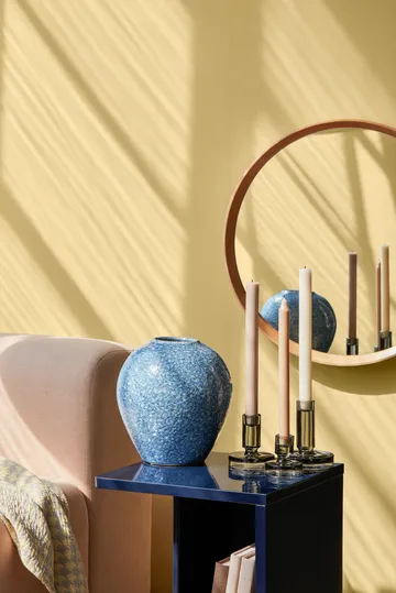 Petra lysestage smoked pearl dark grey fra danske Broste Copenhagen er fremstillet i glas med en bred rund fod og en smal lysestage til kronlys. Kombinér gerne den mørkegrå lysestage med øvrige interiørdetaljer i Petra-serien for en rød tråd i dit hjem.