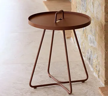 On-the-move sidebord Ø44 cm fra Cane-line er designet af Strand & Hvass. Dette praktiske og funktionelle bord har en elegant aftagelig bakke, der gør det nemt at servere eller flytte genstande. Med sin lette vægt og behagelige håndtag er det nemt at flytte bordet efter behov. Bordet er fremstillet af holdbare materialer, der tåler vejr og vind, hvilket gør det perfekt til både indendørs og udendørs brug.