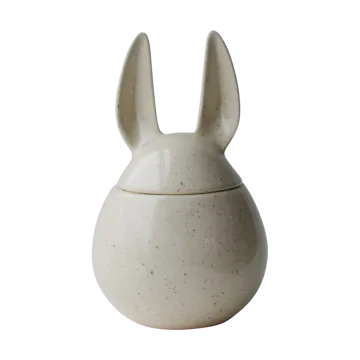 DBKD Eating rabbit skål lille er fremstillet af keramik og kan bruges både som opbevaringskrukke til småting og som serveringsskål til påskeslik. Takket være det smarte og søde låg holder slik sig frisk længere. Den bløde og minimalistiske silhuet med to kaninører er en moderne fortolkning af den klassiske påskehare og bliver en charmerende dekoration på bordet eller vindueskarmen til påske.