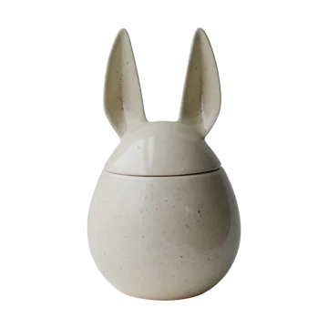 DBKD Eating rabbit skål stor kan bruges både som opbevaringskrukke og serveringsskål til påskeslik eller småting. Den bløde og minimalistiske silhuet med to kaninører er en moderne fortolkning af den klassiske påskehare og bliver en charmerende påskedekoration på bordet eller vindueskarmen. Glædelig påske!