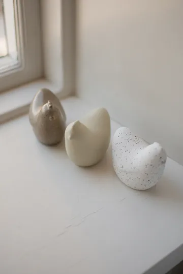 Mini Hens 8 cm fra DBKD er små keramikhøns designet af Halina Fritsch og fremstillet af 100% keramik. Hver hønsefigur er unik og varierer i form, størrelse og farve, hvilket giver dem karakter. Disse dekorative miniaturehøns fås i tre farver og passer lige godt i et landligt miljø som i et moderne hjem. Perfekte som små detaljer, der skaber charme og varme i dit hjem.