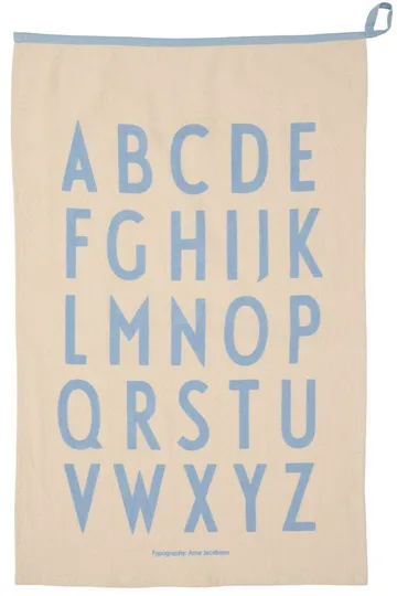Design Letters Premium classic viskestykke 50x70 cm fra Design Letters er lavet af 100% bomuld, hvilket giver både høj sugeevne og blødhed. Dette bomuldsviskestykke er en eksklusiv udgave af den klassiske model fra 2011, prydet med Arne Jacobsens ikoniske Vintage ABC-tryk. Den ekstra store størrelse og den dekorative bånddetalje gør viskestykket både praktisk og dekorativt – perfekt til et stilfuldt køkken.