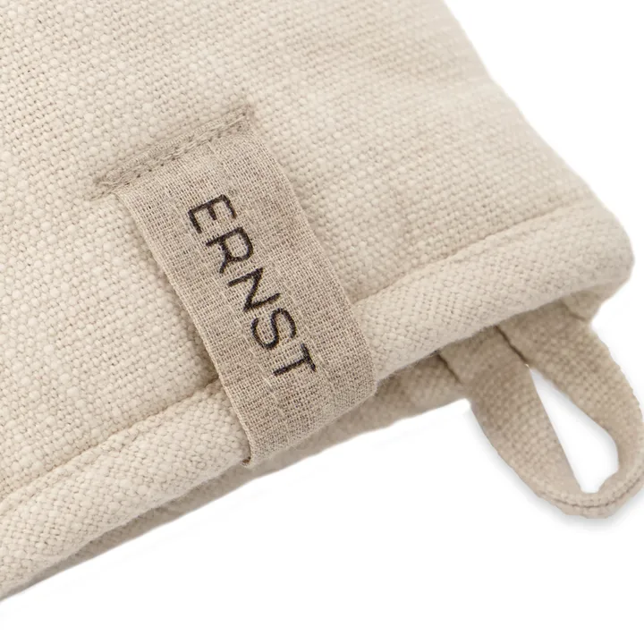 Ernst grillhandske bomuld er fremstillet i 100% bomuld og har en stilren farve. Grillhandsken beskytter dine hænder mod varme genstande og gør køkkenarbejdet lettere. Handsken har ERNST‑logoet syet fast ved åbningen og en praktisk løkke, så du kan hænge den op og altid have den lige ved hånden.
