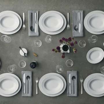 Den dybe tallerken Eva Trio Legio Nova er ideel, når du vil skabe en borddækning med restaurant følelse. Designet er inspireret af det danske kokkelandshold, deres madkunst og den omsorg de lægger i deres håndværk. Tallerkenen er lavet af holdbart porcelæn med riller langs kanterne, der indrammer maden på en smuk måde. Perfekt at bruge både til hverdag og fest!