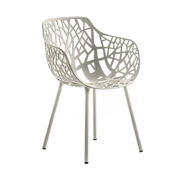 Forest karmstol fra Fast er en veludformet stol, der forvandler terrassen eller altanen til et indbydende sted. Med sit smukke mønster kombinerer den æstetik med komfort og praktisk brug — nem at vedligeholde og klar til dagligt samvær. Forest karmstol fungerer lige så godt indendørs som udendørs og bliver hurtigt en favorit til lange samtaler omkring bordet, et afslappende læsehjørne eller ekstra siddepladser, når gæsterne kommer. Et tidløst og funktionelt møbel til hjemmet.