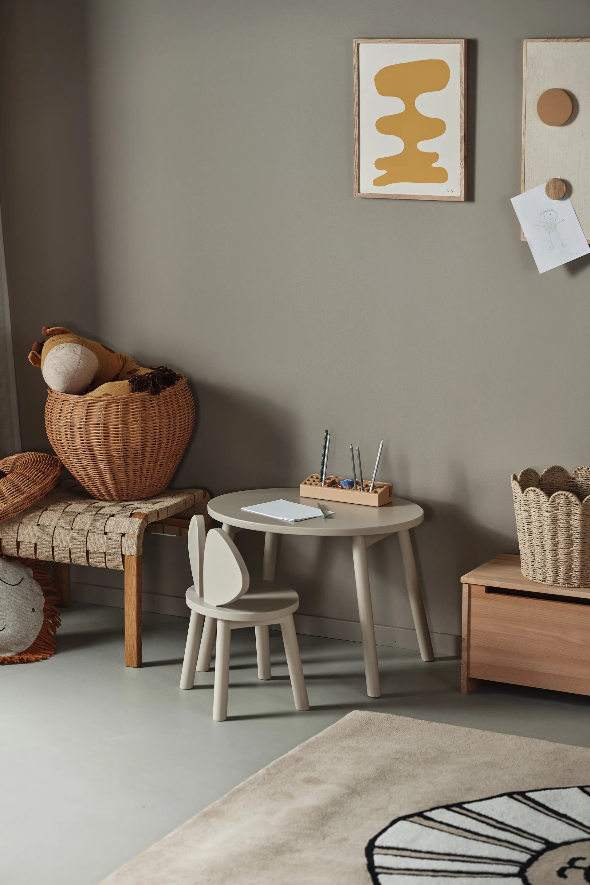 Apple opbevaringskurv fra Ferm Living er lavet af flettet rattan i en charmerende æbleform. Fyld kurven med børnenes tæpper, legetøj eller bamser for at skabe mere gulvplads at lege på. Måske vil du bruge den til dig selv? Så er den perfekt i fx badeværelset til opbevaring af make-up og toiletartikler. Placer gerne flere kurve sammen for ensartet og legende opbevaring.