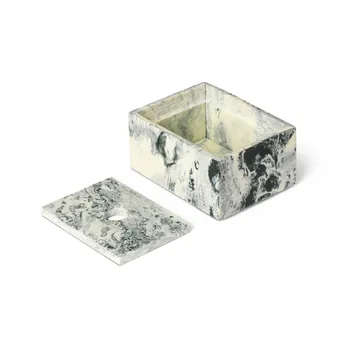 Mist opbevaringsboks 7,5x10 cm fra Ferm Living er fremstillet af en unik blanding af naturmaterialer, hvilket skaber variationer i udseendet. Med sit legende geometriske design tilbyder den alsidige opbevaringsløsninger. Låget passer nemt på bunden og har en lille udskæring for nem adgang. Perfekt til opbevaring på badeværelset, kontortilbehør eller små skatte.