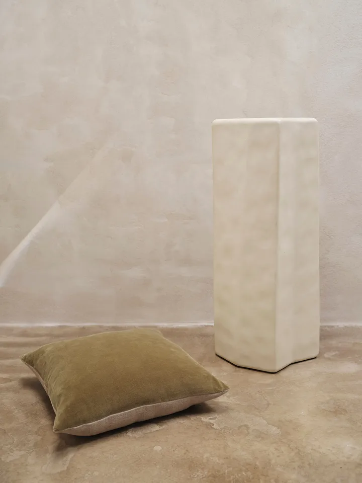 Senti pude 50x50 cm fra Ferm Living tilbyder en blød, indbydende overflade på den ene side og et naturligt udtryk på den anden. Puden er på forsiden lavet af bomuldssammet og bagsiden af 100 % hør. De komplementerende teksturer balancerer afslappet charme med elegant enkelhed, hvilket gør den til et alsidigt indslag i ethvert rum.