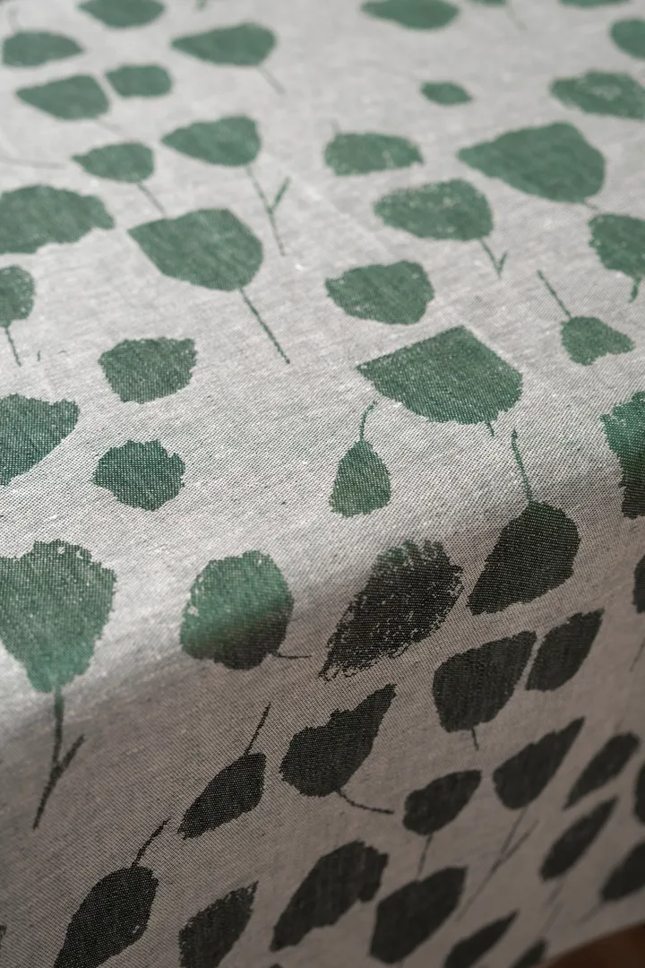 Bouquet dug 147x147 cm fra svenske Fine Little Day er en firkantet dug fremstillet af hør med et mønster designet af Isis Maakestad. Dugen er vævet med en jacquardteknik, som gør den dobbeltsidet, og størrelsen gør, at den passer lige godt på runde som kantede borde.