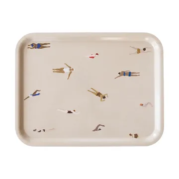 Swimmers bakke 33x43 cm fra Fine Little Day er en rummelig bakke i lamineret birk med et legende motiv af Elisabeth Dunker. Den tåler daglig brug og fungerer lige godt til morgenmad og kaffe som til at samle krydderier og olier på køkkenbordet. Den holdbare overflade er let at tørre af, og den ikoniske originaltegning i kridt og akryl giver hver servering en glad og kunstnerisk følelse. FSC-mærkningen viser, at bakken er fremstillet med omtanke for natur og socialt ansvar — et fint valg til hjemmet.
