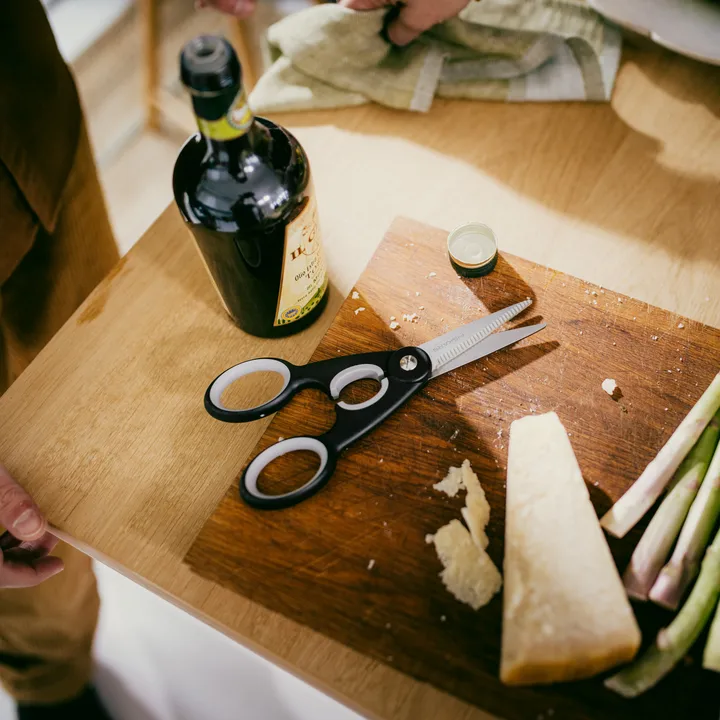 Functional Form køkkensaks fra Fiskars kombinerer holdbart rustfrit stål med et skridsikkert Softgrip-håndtag for en sikker og behagelig brug. Denne køkkensaks er designet til at passe alle, også dem med svagere hænder, og bliver hurtigt et uundværligt værktøj i køkkenet. Perfekt til alle slags klippeopgaver under madlavningen.