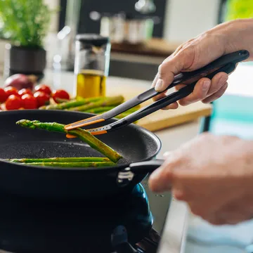 Functional Form tang 28,7 cm fra Fiskars har en smart konstruktion med små pigge for enden af tangen, hvilket giver et godt greb, når du skal håndtere dine madvarer. De silikonebelagte ender på tangen sikrer desuden, at du ikke ridser din stegepande.